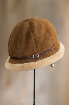 Our elegant shearling sheepskin hat tops your office wardrobe or weekend jacket with feminine style