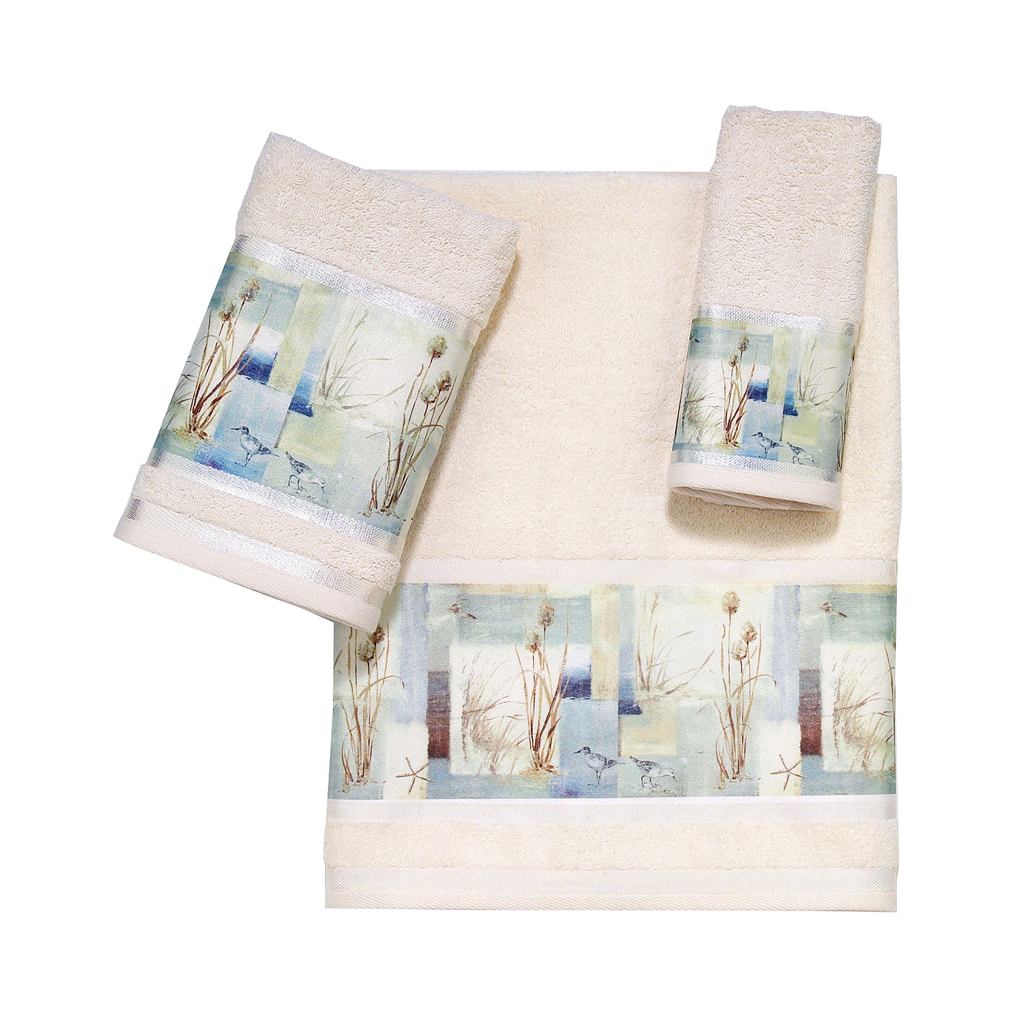 Create a serene oceanic scene in your bathroom with this soft fingertip towel and its beautiful coastal-themed embroidery