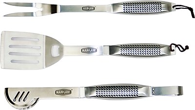 Man Law BBQ 3 Piece Non-Slip Heavy Duty Stainless Steel Tool Set